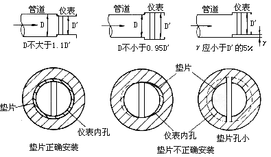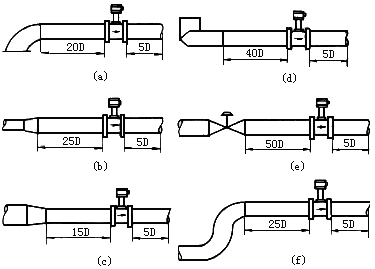 2) 配管應與傳感器同心,同軸度應小于0.05D`。