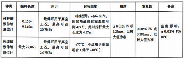 表1 硬桿磁致伸縮液位計和軟纜磁致伸縮液位計的主要參數