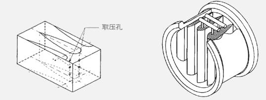 機翼測風裝置是采用一種機翼形節流件的節流式流量傳感器。結構原理圖如下: