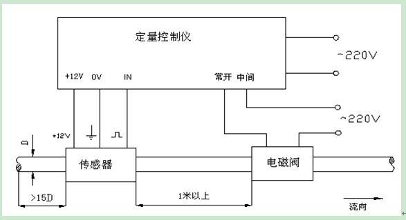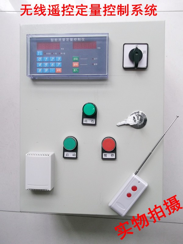 2、定量值設定完后,按下啟動按鈕電磁閥、水泵打開,流量計開始工作。儀表右邊窗口開始根據(jù)左邊定量值累加,等達到定量值后電磁閥、水泵自動關閉,定量結束。
