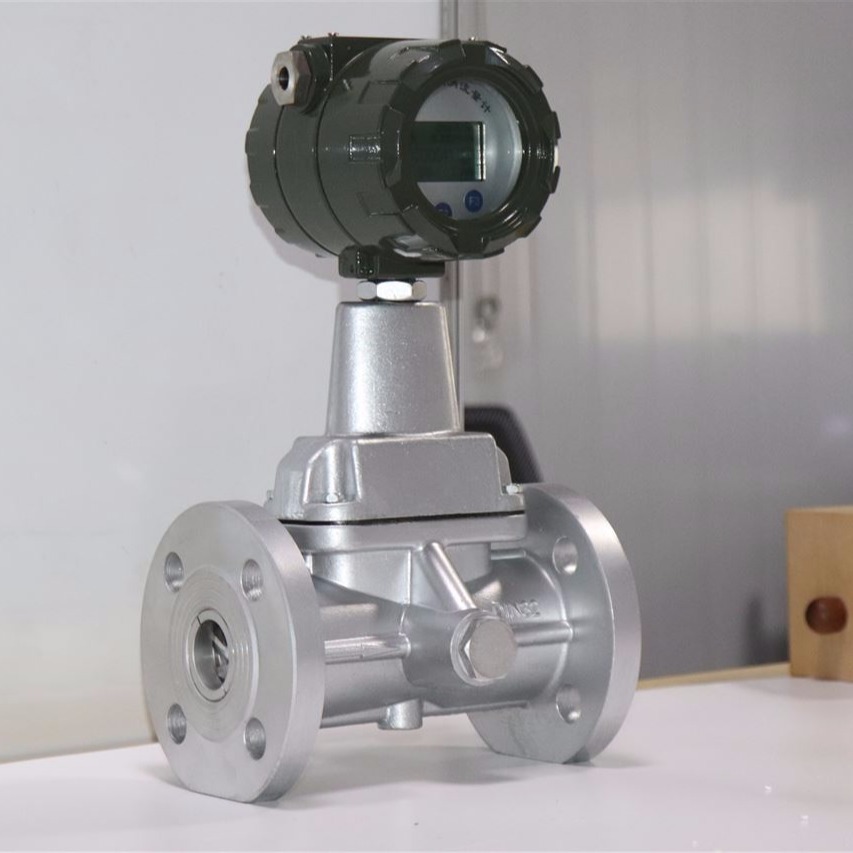 當流體通過螺旋形的旋渦發生體后,流體被迫繞旋渦發生體中心劇烈地旋轉,形成旋渦流。旋渦流加速,沿流動方向經縮段、流動強度增強。當旋渦流進入擴散段后,在導流體回流的作用下,該旋渦產生二次旋轉,二次旋渦的頻率與流量與正比。當流量計設計得當時,在很寬的流量范圍內,旋渦頻率與流量成線性關系。該頻率由壓電傳感器檢測,通過流量積算儀進行運算和處理。顯示流量的瞬間流量和累積總量,并變送輸出對應的4-20mA電流信號。
